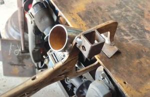 “I started with a rusty, old, vise grip-style C-clamp,” says Stewart. “For parts, I cut 2-in. lengths of 1 by 1-in. angle iron, Schedule 40 1 7/8-in. O.D. steel tubing and 1/8-in. wall 1 by 1-in. square tubing.”