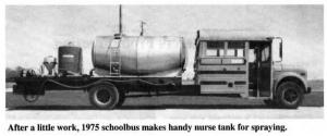 They're cheap and available," says Mark, who turned a 1975 Chevrolet 66-passenger bus into a handy nurse truck for spraying.