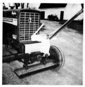 I bolted the front-mounted spear onto a 2-in. slotted pipe that's welded to a yoke equipped with a 1 1/4-in. pin that serves as a hinge. The yoke is mounted on an angle iron bracket that bolts onto the tractor's front-end weight bracket. The cylinder mounts on a bracket that bolts to the bolster ahead of the front axle. (Gene Buch, Rt. 4, Box 22, Fairfield, Iowa 52556 ph 515 472-3768)