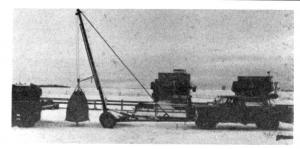 The "sky hook" stands slightly over 20 ft. high. Empey recommends using an 8,000 lb. battery-powered winch to do the lifting. The driver can raise or lower the winch "on the go" right from the cab of the truck as the load is being pushed, or pulled. Although the lift can be pulled, it's much easier to control and maneuver if hooked to the front of the vehicle, says Empey. It folds down hydraulically for down-the-road transport at road speed.