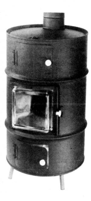 Build Yourself A Barrel Stove ENERGY Wood Burners (65) 2-1-11 A conversion kit from Country Craftsman makes a horizontal wood burning stove from a 17, 30 or 55 gal, drum. "If you have a very large area to heat and fuel is no problem, consider using the 55 gal. drum with our Model 15155 kit," advises the manufacturer. "Otherwise, we recommend the smaller size 30 or 17 gal. drums which, when fully stoked, deliver a large amount of heat and require less space and fuel." Each kit contains steel legs, cast iron 5 in. stove pipe flange, iron door assembly with primary and secondary air draft controls, all assembly hardware and easy bolt-together instructions.