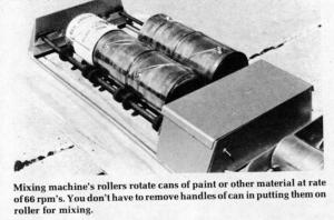 Designed primarily for mixing paint, it rolls rather than shakes the can. "Shaker-type mixers don't do a good job of mixing paint in the center of the can," Collay points out. "With rolling, all the paint from end to end is thoroughly and uniformly mixed in 10 or 15 minutes."