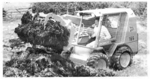 The largest of two "single arm" models boasts 1,432 lbs. lift capacity at full height; a dump height of 7 ft., 4 in.; a loadover height of 8 ft., 10 in.; and 39 in. of reach at maximum height. It's self-leveling for attachments and powered by a 4-cyl., 42 hp engine.