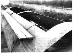 Line, who was helped by Glenn 0' Cull and Joe Piekarczyk, cut the tank in half lengthwise, then cut a pair of 4 ft. wide, 8-ft. long loading doors in the top of one of the halves. He then bolted a 3 by 4-in. wood board along the bottom edge on each side. The boards rest on top of the sides of the truck box. Four turnbuckles, connected by steel cable to the boards, hold the cover in place by attaching to brackets bolted at each corner of the box.
