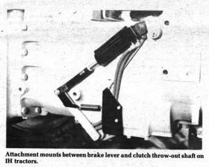 The attachment fits IH 706, 756, 766, 886 and larger models in each series, including smaller 4-wheel drives and other IH models with a similar type transmission brake. Sells for $289.