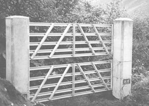 The posts support a pair of 14-ft. galvanized gates. Hinges were cast in place. "The posts have a real solid feel to them and should last virtually forever," says Skoog, who used house numbers to mold the date he built the gate into the posts.