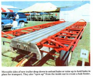"It makes a nifty feeder because you can move it if it gets muddy around the wagon. Also, bales are off the ground so there's less waste," says Rader, who has about 100 acres of cash crop alfalfa. 'He just finished the prototype bale hauler this spring and is already negotiating with a manufacturer to produce the patent-pending transporter-feeder. He says that unlike the prototype, production models will have a metal rather than wood bed. The hauler can be mounted on a standard 4-wheel running gear.