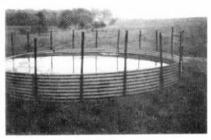 I built a water-gathering system that might be unique in the world. I got the idea when I was considering building a cattle-watering pond on some land that was always moist even in the dry part of summer. I decided to build a collector tank big enough to gather moisture from the wet surface areas and let cattle drink it from the tank I've now built several ground water collectors, making each one a little different depending on the amount of water available. We simply doze out a trench through a wet, seepy area and lay a down sloping length of 4-in. drain tile, covering it with coarse gravel. A 1-in. dia. pipe runs up above ground from the downward end of the tile and the tank is set up around it. Water collects in the gravel, flows enters the tile, and flows up into the tank with enough flow so that it never freezes. The tanks are made from grain bin rings. Each holds about 7,000 gal. so you don't have to have a large flow of water to keep it full. The bottom of each tank is concreted. Cost for each setup is $500 to $1,500, depending on the amount of water available. (Paul Halsey, Rt. A Box 34, Fortuna, Mo. 65034)
