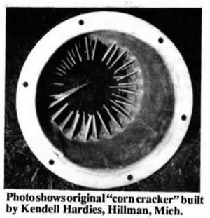 "Several years ago I read in FARM SHOW (Vol. 13, No. 6) about a farmer who had installed sickle sections in a piece of pipe just above his silo blower in order to crack shelled corn as he blew it up into his silo. I've used the idea for three years with good results," says Robert Ullom, Flandreau, S. Dak.