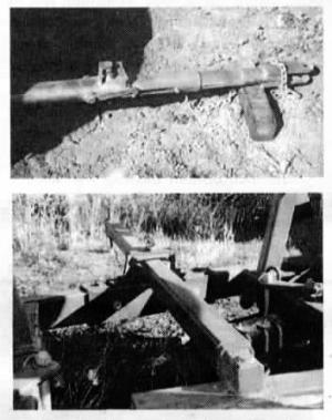 "The spring-loaded mechanism that holds the sliding pin in place consists of two 6-in. long hooks cut out of 1/2 in. thick flat steel. They mount on either side of the outer pipe and automatically latch onto the pin when the tongue is retracted. The two hooks pivot on a 5/8 by 6-in. bolt with locknut. A 2 1/2 in. coil spring holds the hooks down.