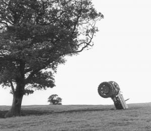 Ed Walley is a farmer in England who got the idea for his crashed tractor after reading a story from FARM SHOW about a farmer who planted a bunch of Cadillacs and other gas guzzlers in the ground nose first to make a "sculpture" that looks like Stonehenge.