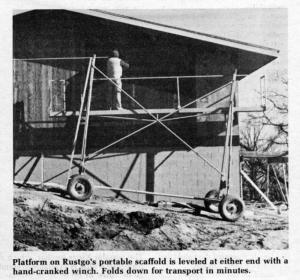 "This portable scaffold was designed for industrial and construction use, but more and more farmers are finding it useful for painting and doing repairs on barns, silos, or sheds, says a spokesman for the manufacturer, Rustgo Company, of Spencer, Neb.