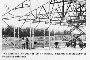 Latest new wrinkle in farm buildings is the Poly-Strut concept, created by Ronald Trafton, Drayton Plains, Mich. It makes use of a unique bolt-on metal column which may save up to 30% on material and labor costs, compared to conventional steel buildings.