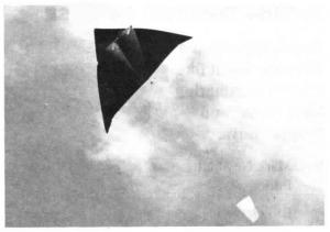 It has a 3 1/2-ft. wingspan and a new tail that gives it stability. When flown on its 42 1/2-ft. aluminum pole and 39-ft. line, the kite will automatically launch and relaunch as winds come and go. The pole allows kite to be flown around orchards, near buildings and tall trees where other kites can't be used.
