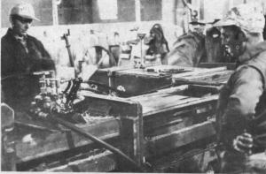 The compactor squeezes two conventional size bales into one (rather than squeezing one bale down to half size). It develops 80 tons of hydraulic power and will compress 150 bales (3 1/2 tons) per hour. While squeezing two bales, the compressing action of the cylinder moves the next two bales to the compactor. When the cylinder contracts, a lever is manually tripped and the next two bales are dropped, one at a time, into the compaction chamber, Gene points out. The double-compacted bales are tied with high-tensile wire.