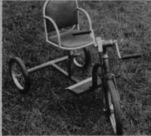 This pedal-powered wheelchair was built by Handicap Mobility, Inc., a custom shop in Carter Lake, Iowa that builds specialty equipment for the disabled. The pedaled wheelchair was built for Terri Sopcich, of Omaha, Nebraska, a 10-year-old who has suffered from severe lateral curvature of the spine - or scoliosis - since infancy. The special built chair lets her move easily to and from school, steering and pedaling with her hands. Todd Bequette of Handicap Mobility, Inc., who designed the chair, says it's difficult for a young girl to keep up with classmates in a conventional wheelchair. For more information on the pedal chair, or other specialty equipment or conversions, contact: FARM SHOW Followup, Handicap Mobility, Inc., 511 E. Locust, Carter Lake, Iowa 51510 (ph 712 347-6666).