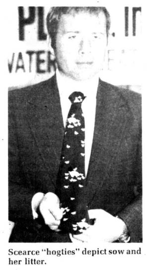 "If you raise hogs, or know some-one who does, these product-promoting neckties are attractive eye catchers and great conversation pieces," says Scearce.