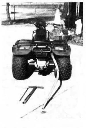 "I use a 2-ft. long T-handled probe to find the tunnel and dig a hole into it with a digger pipe that's got serrated, sharpened teeth and a side opening to remove the dirt. Then I slip an adaptor over the exhaust pipe on the ATV and push the gas pipe down into the tunnel.