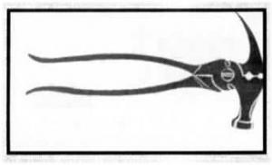 When the handles are held closed, the head of the tool is closed and looks pretty much like any clawed hammer. When you open up the handles, a gripper set of teeth open up in the middle of the head - great for pulling staples - and wire-cutting blades open up under the head of the hammer. There's another set of gripper teeth between the handles, below the pivot point.
