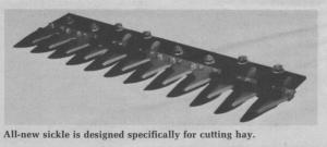 Key to success of the new hay-cutting sickle is that it has twice as many guards as a conventional cutterbar. The guards are spaced on 2-in. centers and the sickle has a 3-in. stroke so there's a ¢-in. overstroke.