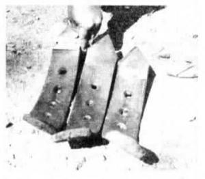"After finding they were a near perfect fit for the twisted shovels we were using, he decided to test the idea by hard surfacing points on the same plow using both conventional methods and sickle sections. We found little difference in their wear inhibiting qualities. The advantage of using sickle sections is that you save money because the worn-out sections are free and secondly, because it's much faster to apply the sickle sections than it is to hard surface using conventional methods.