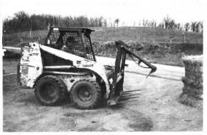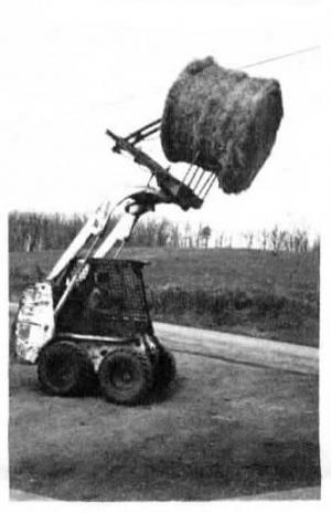 Stoltzfus built his first skidsteer round bale grabber 6 years ago and has since built 3 more for neighbors. "Moving round bales with a skid steer loader is more efficient than moving them with a front-end loader. I can turn on a dime which allows me to stack bales anywhere inside buildings because I can maneuver right around posts and machinery with no problem. Bales stacked on end cure better because air flows up through the center of the bale. They also keep their shape bet-ter. Bales can't fall off my grapple fork as easily as they can on a front-end loader spear because there are two holding points. It's also safer than a front-end loader because the grapple fork framework blocks the bale if it would ever roll back-ward. The rollover cage also offers protection from bales.