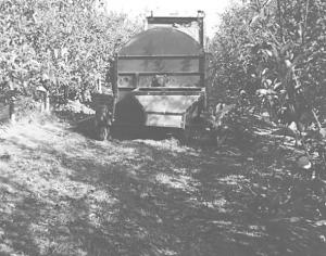 A flail mower then chops the windrows. The result is a reduction in the source of apple scab as well as some harmful insects that would normally overwinter in the debris.