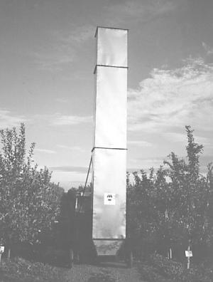 As an add-on to the silo blower units, Van Diepen made a wind machine that sucks warmer air from aloft and blows it around young trees to keep them from freezing in the spring.