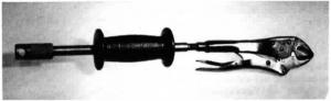 The slide grip handle slides back and forth giving it a hammer-like action for pulling. Some uses include: pulling cotter pins and bearings; pulling dents on auto bodies; pulling slide gates open on grain bins; pulling nails without damaging finished wood; pulling staples from fence-posts; and many other mechanical, electrical and plumbing jobs.
