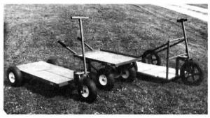 He makes three standard designs and also custom-builds to order. The most popular model is a farm/utility cart with a 22 by 47-in. platform with optional sides that fit in stake pockets. The 3-wheel cart carries up to a 350-lb. payload and is built low to the ground to make it easy to load and unload yet has 12-in. non-corrosive, ball bearing-mounted plastic wheels that roll easily across rough ground. "We originally designed it to move small animals, but farmers have come up with all kinds of uses," says Spitson. Sells for $265.