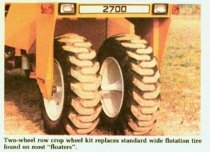 "Pickup sprayers are costly while high boy tractors are slow. With the conversion kit, custom applicators can use their big flotation tire 3 wheeler rigs in row crops. The narrow wheels allow the machines to straddle rows as narrow as 30-in. for post-emerge fertilizer and pesticide applications," says Gary Rothrock, salesman for McCord Terra Tire Sales and Service, manufacturer of the narrow wheel conversion kit.
