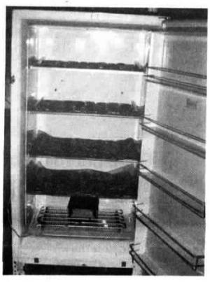 "The racks have to be rotated every couple of hours because fruit on the bottom racks dries faster than on the top ones. If we want more heat inside the freezer we can put a tin can over the vent pipe. We dry 2 or 3 bu. of fruit, sealing it up in jars. We give a lot away to friends."