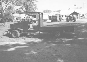 The 8 ft. sq. flatbed is built from galvanized bleachers I got from a nearby high school. The bleacher seat sections mount on crossmembers I made out of I-beam.