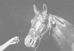 The device consists of a leather collar with double-sided rivets that come apart if the horse ever gets hung up. Weighing only 3 oz., it's equipped with a waterproof radio receiver that's activated by a hand-held remote control unit about the size of a pager.