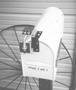 "Mail Call" consists of two parts - a bracket that goes on top of the mailbox and a spring-loaded flat that goes on the door. You set the device by slipping the flag under the bracket. When the mailman opens the door to deliver the mail, the flag pulls out and stands up straight. After the door is shut, the bright yellow paddle with with a red dot in the middle is easily visible from the house.