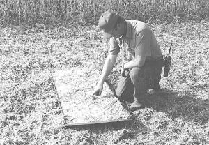 When you check the pan, you use a chart to tell what your grain loss is over the shoe and chopper. Checking underneath the pan lets you know what your loss is from the header.