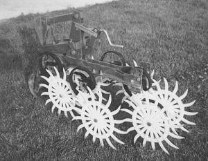 They consist of mounting brackets that bolt directly to cultivator shanks so that standard 20 in. dia. rotary hoe wheels can be mounted to run between every shovel and the row at speeds of up to 10 mph.