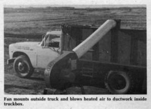 Lloyd Kosmachup, Wadena, Sask., says his truckbed dryer, which will work in any size truck, saves money by eliminating handling costs and the cleanup that's necessary after drying. You simply dry it in the truck and then either put it into storage or haul it to market. The dryer fan that's used for truck drying can also be adapted to hopper bins or conventional bin-drying systems.