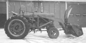 Loader-Mounted Snowblower Driven By PTO SNOWBLOWERS Snowblowers 22-6-4 Farmall tractors don't have rear hydraulics or a 3-pt. hitch so it's difficult to mount a snowblower on them. Eugene Blindauer, Ply-mouth, Wis., solved the problem by mounting a 2-stage snowblower on his Farmall M's front-end loader and powering it with a shaft that's chain-driven by the pto.