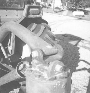 Tired of having to constantly adjust the 3-pt. lift arms when using a post hole digger on hillsides, Edwin Kolar solved the problem by fashioning a U-joint type swivel on top of the auger gearbox that allows the auger to rotate a full 360 degrees.