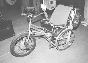 "It works just like a tricycle except that the seat is a lot more comfortable. I replaced the original wheelchair seat with a rubber padded one made for a moped," says Funk.