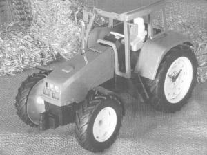 Yellow and green in color, the tractor measures 11 in. long by 7 in. high and 6 in. wide. Runs on three "AA" batteries.