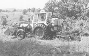 He uses the herbicide Remedy mixed with either water or diesel fuel. "On thick sumac 4 to 5 ft. tall, I have to go over it again a second time a year later to get nearly a 100 percent kill because the wheels of the tractor knock some of it down flat and because some seed germinates the next year. On hickory, oak and persimmon, I spot spray the leaves after going over them with the applicator. The cab is equipped with a pair of 18-in. long spray guns - one on each side of the operator. I modified the orifices on the guns so I can precisely control the spray pattern.