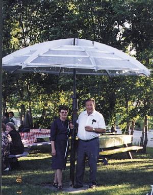 "It provides a lot of shade and makes a great conversation piece. People get a good laugh out of it," says Ulrich. "My daughter got the idea for it one day when we had company. I wasn't using the dish any more and was going to get rid of it when she mentioned that it looked like an umbrella. I plan to attach a round table to the base of the dish."