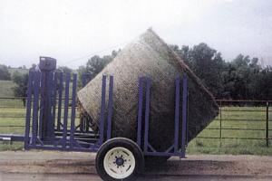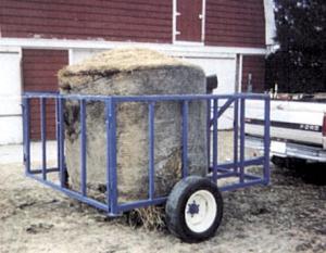 "It's safer to use than 3-pt. bale haulers because the cage around the bale keeps it from falling off, even on rough roads, and you can travel at highway speeds," says Mumm. "It takes only 2 minutes to load or unload the bale."