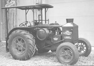 "The 3-wheeled æLittle Bull' was built by the Bull Tractor Co. from 1913 to 1917. It cost only $335 and took the market by storm when it came out, outselling all of its competitors. More than 3,800 units were sold in its first year. However, the tractor's 2-cyl. opposed engine, rated at 5-12 hp (5 drawbar hp and 12 hp at the belt), proved inadequate and many buyers were sadly disappointed with its performance. A larger, heavier version with a 12-24 hp rating was introduced in 1915 and was marketed through 1917, when the company was sold and production was discontinued. During its four years in production the Bull underwent the largest number of production line changes of any tractor ever built in a comparable time period.