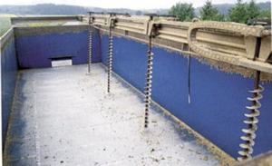 During drying, augers mounted on a beam shuttle through the wagon at 10 minute intervals.