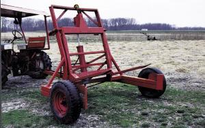 McKee designed the rig to pull behind a small tractor that would otherwise not have enough power to handle big round bales.