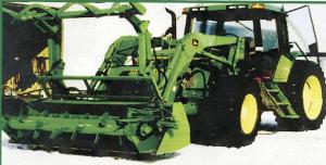 One of the biggest problems with feeding big round bales is getting the twine off, says Schwitzer, especially if you've got a lot of cattle to feed. After years of continually climbing on and off the tractor to cut off twine by hand, he finally came up with a machine to do the job that works so well he brought it to the recent Farm Progress Show in Regina, Sask. The Twine Stripper consists of a drum rotor fitted with angled cutting blades that fits inside a loader bucket (7 ft. or wider). The drum is driven by two orbit motors. When pressed against the side of a bale, the drum strips the twine off the bale, wrapping it on the drum. The drum and bucket are also used to roll the bale out along the ground or - if the bucket is fitted with a grapple fork - you can pick up the bale to put it into a feeder.