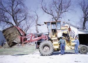 Starting with a late 1960's 3496 Moline combine, Pekarek and his uncle, Adolph Benes, removed all the grain cleaning components and bought a salvaged Versatile front end loader for the project.
